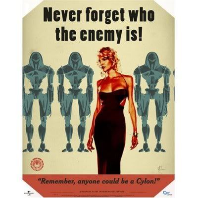 FYI, the Space Channel will be airing all ten episodes from the first half of Season Four starting at 10 am (!!!) on the day leading up to the finale. Then there will be two BSG specials, followed by all ten of the webisodes, and finally the first brand-new episode at 10 pm. That's a frakkin' lot of Battlestar, so book the day off on Friday! ;)